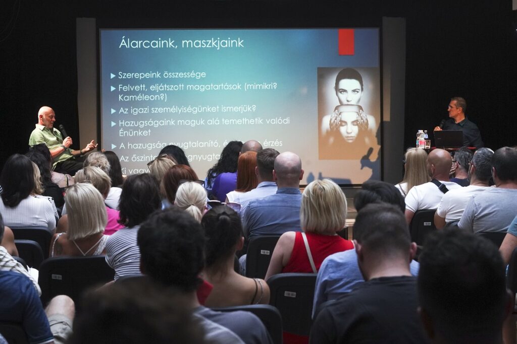 Először azt kellett tisztázni, milyen szerepet játszik életünkben a hazugság. Szoktunk-e magunk is hazudni? A pszichológus megkérte a közönséget, harminc másodperc csöndben gondolják át a legutolsó hetüket. Mindenki mélyen hallgatott. Valóban igaz-e, hogy őszinte vagyok, életem nyitott könyv, ami a szívemen a számon? Lehet-e a hazugság „túlélési kényszer”? Hol kezdődik, mivel végződik a valóság meghamisítása? Szándékosan tesszük-e ezt? Mert sok mindent tarthatunk hazugságnak, ami az élet természetes része. Hazugság-e a nőknek szánt bók, az udvariasság, a jótékony elhallgatás, a füllentés, a féligazság, a tódítás? Hazudik-e a mesélő, hogy történeteit színezze? Doszpot világában, a kihallgatószobákban a hazugság élesben megy. Az a tét, hogy a kihallgatott húsz évig vendég lesz-e egy kies büntetés-végrehajtási intézetben. Antal Gábor egy függőleges tengelyt rajzol. Ez a személyiség vonala. Bármilyen irányban távolodsz a vonaltól, kifordulsz önmagadból. Egy bizonyos szint után a hazugságnak mentális roncsoló hatása van. Kialakulnak az élethazugságok.